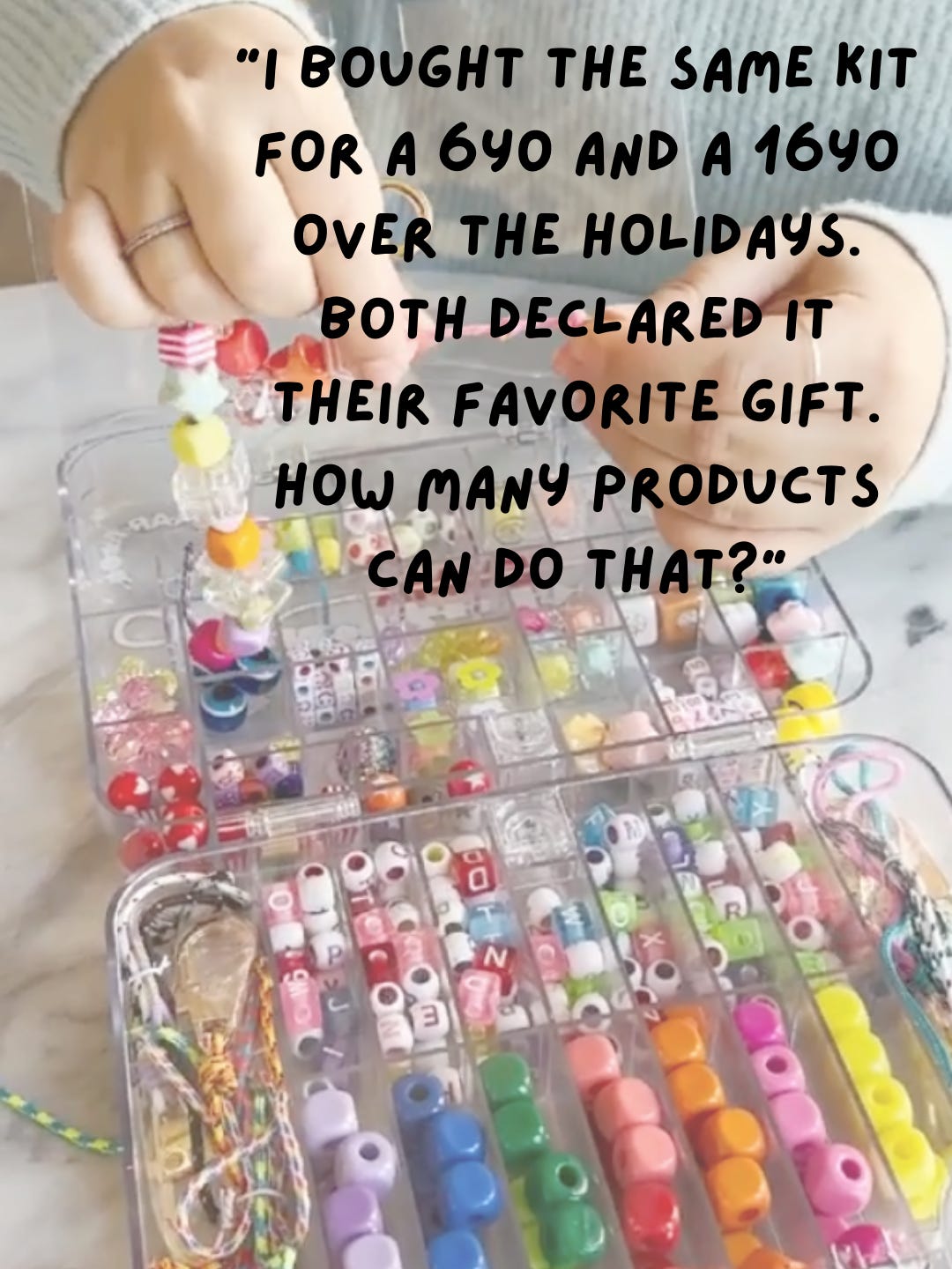 If you’ve been thinking about the kits, this is the moment. Beads are very in right now, and this is where I get a lot of my fun jewelry. You can make bag charms, bracelets, or little personalized gifts that look way more thoughtful than the amount of effort required. In addition to bag charms and bracelets, they also recently included a shoelace charm kit. Get all three!